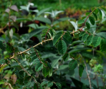 Rosier arbustif chinois en provenance des montagnes Siguniang dans le Sichuan. Cette espèce n'a pas encore fleuri dans notre jardin et reste à l'étude. Ses rameaux sont couverts de belles épines. Feuilles composées de folioles rondes espacées. Végétativement proche du groupe de Rosa setipoda.
