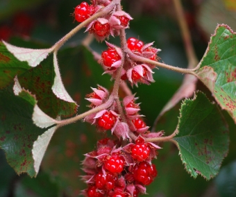 Une autre espèce couvre-sol mais à feuilles plus grandes. Rubus buergeri pousse au Japon et en Corée et les plants que nous vous proposons ont pour origine l'île de Jejudo au sud de la Corée.