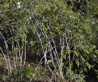 Voici un beau Rubus à feuilles caduques, composées et vertes, portées par des tiges couvertes d'une pruine gris clair très décorative. Ceci est particulièrement vrai en hiver lorsque les feuilles sont tombées. On a alors un arbuste coloré et très graphique. On peut l'associer à des cornouillers à bois rouge par exemple pour un bel effet de couleurs en hiver.