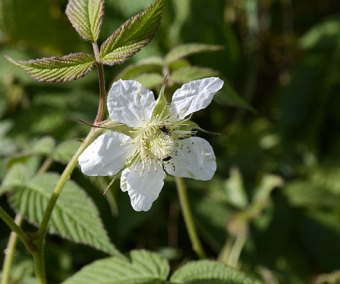 Ce Rubus plutôt tapissant ne dépasse guère les 40 cm de haut. Il a de grandes feuilles composées. Au printemps, il donne de grandes fleurs blanches suivies d'énormes mûres rouges brillantes et translucides. A utiliser pour couvrir le sol (sous des arbustes ou sur une bute par exemple) et pour ses fruits comestibles et assez bons ! Joli et sain feuillage également, assez vert tendre et duveteux.