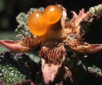 Une pure merveille ! Ce petit Rubus rampant des montagnes d'Himalaya n'a que des avantages : son feuillage est magnifique car tout gaufré, persistant et prenant au soleil des tons rougeâtres; sa forme est très compact et il forme un coussin dense qui empêche la poussée de toute mauvaise herbe; il n'est pas épineux; ses fleurs blanches sont bien visibles au pintemps au-dessus du feuillage et, enfin, ses fruits orange vif sont délicieux !