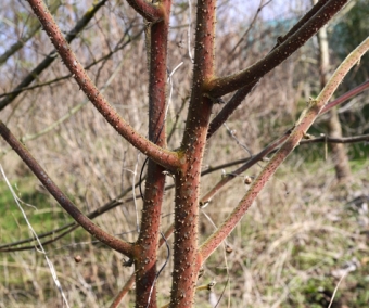Sorte de framboisier géant dépassant les 3 m de haut ! Plante très graphique avec ses fortes tiges brun-rouge très décoratives, surtout en hiver. Ses grandes feuilles duveteuses sont composées de 3 folioles. Fleurs blanches au printemps suivies de fruits rouges et comestibles. Culture facile au soleil ou à mi-ombre dans toute terre de jardin. Plants vendus en mottes ou en racines nues selon la saison.