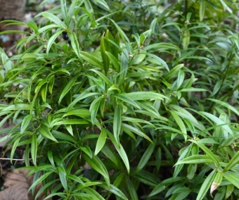 De la même famille que le buis (Buxacées), mais non concerné par son parasite la Pyrale, le Sarcoccoca est un petit arbuste à croissance lente, persistant, et très rustique. Il réussit à l'ombre même très sombre (mais sera plus florifère avec une certaine luminosité), et il est extrêmement résistant au sec une fois installé.