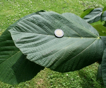 Ce tilleul originaire d'Amérique du nord est impressionnant ! En effet, c'est sans doute celui qui a les plus grandes feuilles. Elles peuvent atteindre 30 cm de long ! Ses fleurs sont également de belle taille, parfumées, en juillet. Les jeunes feuilles sont colorées de rose au printemps. Il atteint environ 10m de haut. Il sera plus beau placé en situation abritée des vents forts pour ne pas endommager ses grandes feuilles. Sujets greffés de 1,50 m de haut environ