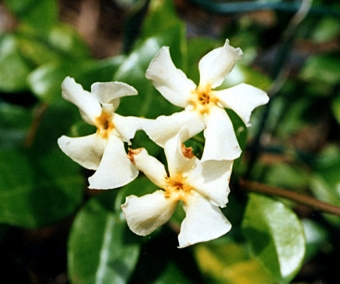 Les Trachelospermum sont des plantes grimpantes de la famille des pervenches. Leurs fleurs ont d'ailleurs la même forme mais sont blanches à jaunes et très parfumées. De plus, leurs feuilles sont persistantes. Ils peuvent également être utilisés en couvre-sol. A faire grimper dans un arbre, sur une pergola, un treillage ou un grillage. Ils sont peu exigeants sur la nature du sol et supportent le calcaire, le sec et aiment le soleil ou la mi-ombre. Leur croissance est rapide. Le seul problème est leur rusticité limitée.