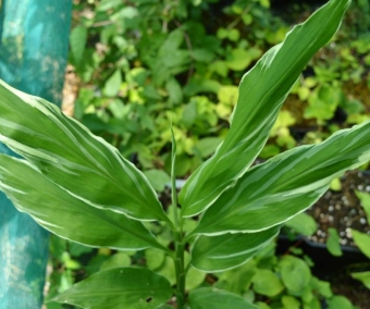 Zingiber mioga est une plante rhizomateuse de la famille des Gingembres. Il est d'ailleurs comestible mais les parties intéressantes culinairement sont les boutons floraux (qui arrivent en été) et les toutes jeunes pousses. Elles possèdent le même genre de parfum que le gingembre classique mais sans le piquant. Et surtout le mioga se cultive en climat continental, il est rustique même en zone 7 (environ -15°C).