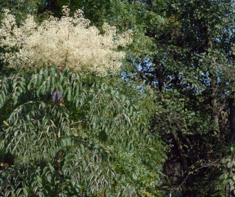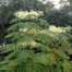 Angélique en arbre du Japon. Grand arbuste multi-troncs portant des immenses feuilles composées caduques prenant de belles teintes à l'automne. Assurément un air d'exotisme au jardin ! A l'automne (septembre-octobre) apparaissent en haut des tiges des énormes inflorescences de milliers de petites fleurs blanches parfumées et très mellifères. La floraison est spectaculaire et ses voit de loin ! Elle dure plusieurs semaines. Un des plus beaux spectacles automnal. Croissance rapide, soleil ou mi-ombre en sol frais à sec. Plus vigoureux et touffu en sol frais. Plants de 50-60 environ.