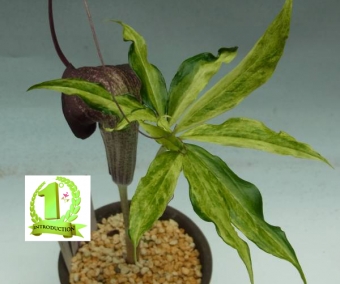 Etonnant Arisaema dont les feuilles sont largement et variablement panachées de vert clair à vert foncé. Au printemps, belles inflorescences pourpres et gris-blanc. Nous sommes en attente de son nom exact. Culture facile en situation ombragée, en sol frais, fertile et bien drainé. Le prix comprend une bulbille.