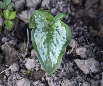 Une forme particulière de l'Arum italicum des sous-bois et lisières, aux feuilles fortement maculées de vert argenté, très décoratives. le feuillage sort en automne et reste persistant en hiver.