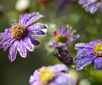 Parmi les centaines de variétés existantes dans les asters, je trouve cet hybride japonais tout à fait séduisant. Tout d'abord, la plante n'est pas très haute, 50/60 cm environ, avec des tiges qui se tiennent bien droites toutes seules. Ensuite, ses inflorescences, tout l'automne, violet profond à coeur jaune. C'est un aster de culture très facile. Ce qui est également intéressant, c'est que ses fleurs sont résistantes au gel et durent donc même après les premières fortes gelées. Plants en âge de fleurir.