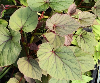 Begonia grandis est le plus courant dans les bégonias rustiques. Il a de grandes feuilles vertes teintées de pourpre au revers et des fleurs roses. Il peut atteindre 70/80 cm de haut. z7