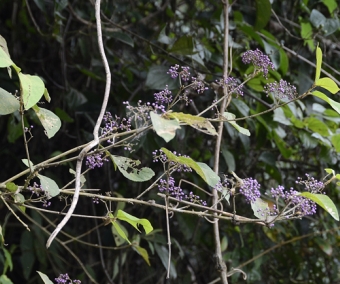 Ce callicarpa est issu d'une collecte de graines dans les montagnes de Taiwan à moyenne altitude. N'ayant pas encore vu les fleurs, nous ne pouvons pas encore lui donner son nom. Il a des feuilles très velues, tout comme ses tiges. En automne, nombreuses baies violettes le long des rameaux. Il pourrait s'agir de Callicarpa formosana. Rusticité limitée je pense, autour de -10°C. Culture au soleil ou à mi-ombre, en toute bonne terre de jardin. Plants de 30/40 cm environ.