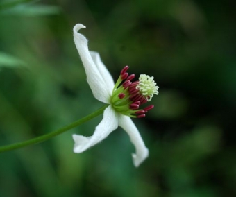 Clématite grimpante vivant dans les montagnes du nord de l'Iran. Son feuillage est fin et, en été, apparaissent des fleurs à 4 sépales blancs, recourbés, avec des étamines violettes au centre. Cette espèce ne craint pas le sec et est rare en culture. A planter au soleil. Quantité limitée.