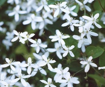 Une clématite herbacée chinoise d'1m à 1,5 m de haut, qui a besoin d'un support pour prendre appui (arbuste, structures) sinon ses tiges sont rampantes.
