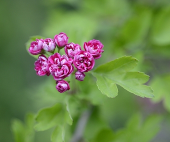 Une très belle Aubépine à fleurs semi-double rose foncé, presque rouge. Il s'agit d'un grand arbuste ou d'un petit arbre, qui peut pousser en tout terrain même très calcaire et très sec.