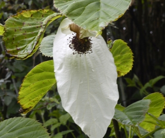 Davidia involucrata, l'arbre aux mouchoirs, doit son nom à ses inflorescences entourées de deux grandes bractées blanches pendantes comme des mouchoirs. C'est un arbre caduc capable d'atteindre 20 m de haut dans son habitat mais de croissance lente et qui ne dépasse guère 7/8 m au bout de nombreuses années. Elle a de belles feuilles largement ovales, dentées et cordées. Ses fleurs sont minuscules et groupées en boules de 2 cm environ et entourées des deux fameuses bractées blanches, en mai-juin. Les fruits apparaissent plus rarement et sont plus ou moins ronds et sont comestibles une fois blets. Sont port, d'abord dressé, s'élargit avec l'âge. A planter en sol fertile, frais et bien drainé (déteste les sols secs). Un arbre exceptionnel mais mettant plusieurs années avant de fleurir. La variété 'Sonoma', proposée ici, est la solution. En effet, elle a été sélectionnée pour sa faculté à fleurir dès le plus jeune âge ! Notre plant dans le jardin avait fleurit dès la première année alors qu'il ne faisait que 40 cm de haut ! Quantité très limitée.