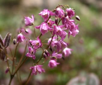 Un superbe Epimedium sélectionné au Japon.Petites fleurs rose simple groupées sur de longues grappes, plante de taille modeste. Le feuillage vert est caduc, mais se pare de superbes tons de rouge vif en automne (voir photo).