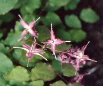 Un épimedium du groupe grandiflorum, facile à cultiver et qui se développe bien comme couvre-sol. Fleurs roses au printemps.