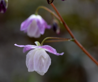 Un nouvel hybride japonais qui rappelle Epimedium 'Murasaki Komachi' et x youngianum 'niveum' par la forme en petites clochettes de ses fleurs. Teintées de rose nuancé, elles aparaissent juste après les feuilles au printemps.