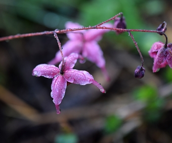 Belle variété formant une touffe arrondie de feuilles caduques. Les jeunes feuilles de printemps sont fortement teintées de rouge. Grandes fleurs rose foncé et rose plus clair au début du printemps. Culture en situation ombragée en sol pas trop sec.