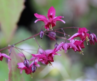 Une très belle nouvelle variété d'Epimedium persistant, à la floraison rose foncé intense, et dont la principale particularité concerne le feuillage qui devient rouge flamboyant en hiver.