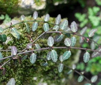 Une jolie forme de ce fusain, que nous avons collecté sur la région du mont Fuji au Japon. C'est un arbuste rampant, couvre-sol, aux toutes petites feuilles vertes et veinées. Idéal en toutes expositions pour couvrir le sol, dans un massif, une rocaille...