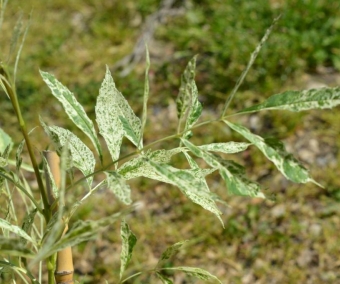Une panachure très lumineuse pour ce Frêne, qui le rend fortement remarquable au jardin parmi des arbres au feuillage vert.