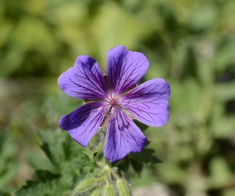 Un beau et vigoureux géranium vivace formant de belles touffes de 50x50 cm environ. Ses grandes fleurs bleu-violacé apparaissent en grand nombre au-dessus du feuillage. Une plante florifère, facile, étouffant les adventices, à cultiver en tout sol au soleil ou à mi-ombre. Cultivés en pots de 1,3 L.