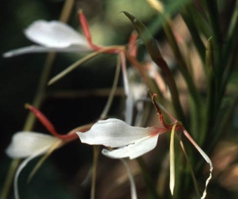 Les Hedychium sont des plantes vivaces de la famille des gingembres cultivées pour leurs exubérantes floraisons colorées et parfois très parfumées. Leurs épais rhizomes donnent des tiges robustes portant de grandes feuilles vertes. L'espèce proposée ici est issue de graines collectées au Népal. En été, des inflorescences apparaissent en haut des tiges portant des fleurs blanc-jaune Les Hedychium se cultivent en extérieur dans les régions douces ou en pot ou serre froide dans les autres régions.