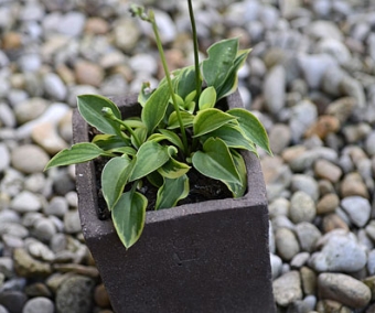Le plus petit des Hostas que nous ayons jamais eu en culture. Obtenu au Japon nous ne connaissons pas son nom. Petites feuilles pétiolées vertes marginées de vert plus clair, d'environ 2 cm. Forme de petites rosettes compactes et basses.
