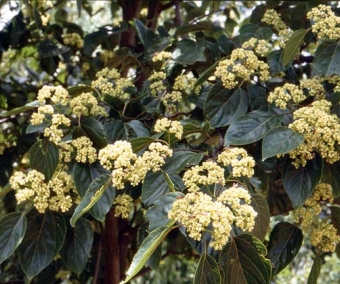Hovenia dulcis est appelé arbre aux raisins secs en raison des pédoncules des fruits qui sont comestibles et qui rappellent le goût des raisins de Corinthe (ou de poire selon certains). C'est un arbre mellifère à grandes feuilles ovales. Ses fleurs, petites et blanc-verdâtre, parfumées, sont groupées en inflorescences de 4/6 cm de large, en juin-août. Fruits gris-marron en automne. Attention, car c'est le pédoncule des fruits que l'on peut manger et non le petit fruit lui-même. Les japonais le consomment beaucoup et un extrait des graines est utilisé comme substitut du miel. Il atteindra une dizaine de mètres ou un peu moins, avec une écorce grise longuement fissurée. Plantation au soleil, en sol frais et bien drainé même si il reste très tolérant et qu'il s'accommode de situations sèches. Accepte tous les pH et ne semble pas craindre un sol argileux. Un bel arbre d'ornement aux curieuses fructifications. z6. Plants de 30/40 cm, quantité limitée.