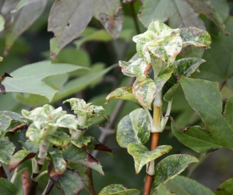 'Kuga Variegated' est une variété rare dont les feuilles des jeunes pousses sont fortement panachées de blanc. Une plante très lumineuse à l'ombre. Plants de 80/100 cm, bien fournis. Quantité très limitée.
