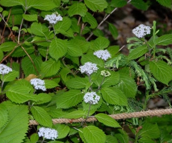 Trop peu connu, Hydrangea hirta est un petit hortensia japonais. Il a un feuillage bien particulier avec de petites feuilles vert brillant et très dentées qui peuvent faire penser aux feuilles des orties. En fin de printemps et début d'été, de nombreuses petites inflorescences terminales blanches apparaissent au bout des rameaux. Elles sont parfumées. Il reste assez petit, entre 0.7 et 1.5 m. Original hortensia aimant l'ombre et les lieux frais, en sol humifère et acide. z6. Plants de 50/60 cm de haut environ, ramifiés et en âge de fleurir.