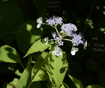Hydrangea involucrata est mon grand coup de cœur de ces dernières années. Ces hortensias en provenance du Japon sont, à mon avis, promis à un bel avenir dans nos jardins. Plusieurs raisons à cela. Tout d'abord leur superbe feuillage constitué de grandes feuilles très saines qui rend l'arbuste beau même en dehors de sa floraison. Ensuite, leur floraison qui intervient tard au jardin, en été et début d'automne, à une saison où les autres hortensias sont fanés. Enfin, ils sont peu encombrants et atteignent 1m de haut environ. En tout cas, ils font l'admiration des visiteurs de notre jardin. Ses inflorescences sont constituées de fleurs bleues au centre et blanches sur le pourtour. Il est encore plus beau à l'ombre dans un sol frais. z6