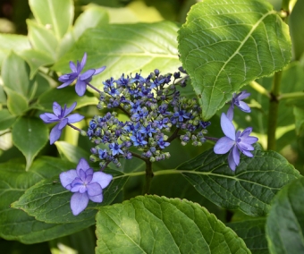 Nous avons l'habitude de voir dans les jardins les classiques hortensias à boules de fleurs (roses, violettes ou bleues selon la variété et/où l'acidité du sol). Un peu passés de mode (mais si je n'aime pas l'expression de 'mode' pour les plantes), il s'agit de plus de boules de fleurs stériles donc sans aucun intérêt autre qu'ornemental (pas de nectar pour les insectes ni de graines).