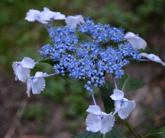Une très jolie variété japonaise aux inflorescences aplaties,les fleurs fertiles au coeur sont bleues et les stériles sur le pourtour sont bleutées et finement dentelées. Un macrophylla que les visiteurs remarquent souvent au jardin, d'autant que la fanaison est également très esthétique. A planter en situation ombragée dans toute terre pas trop sèche. Atteint 1,5 à 2 m adulte (supporte bien la taille comme tous les macrophylla)