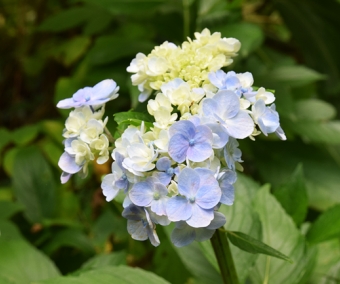Aussi vendu dans le commerce sous le nom de 'Domotoi', c'est une très belle variété atteignant environ 1.5 m de haut à l'âge adulte. En été, les fleurs s'ouvrent vertes, puis deveniennent blanches et enfin roses ou bleutées selon l'acidité du sol. Un très bel effet. Culture comme un hortensia classique.