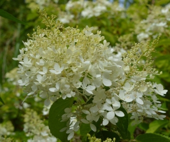 Un des plus florifères parmi les paniculata, il en est tout blanc en été et les panicules de fleurs se succèdent très longtemps, virant progressivement au rose, et persistent sur la plante une fois sèches, pour un effet très décoratif. Enfin un hortensia qui peut se cultiver en plein soleil et qui aime ça ! Si vous ne connaissez pas cette variété vous ne serez pas déçu, c'est une vraie star au jardin qui résiste à des sècheresses passagères en terre riche, et fleuri quand la plupart des autres plantes ont fini. Caduc. Très beau en isolé ou en association avec des hémérocalles de couleurs vives, des rosiers, des clématites... De plus il reste très ornemental en automne et une partie de l'hiver aves ses épis de fleurs sèches.