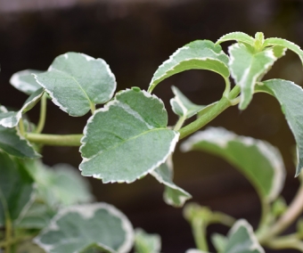 'Silver Lining' est une variété lumineuse aux feuilles panachées d'un vert-gris et de blanc. Plants de 40/50 cm, ramifiés