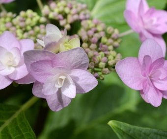 Hydrangea serrata est appelé l'hortensia des montagnes au Japon. Les japonais en ont crée un nombre incalculable aux formes et couleurs très diverses. Beaucoup de ces variétés ont un développement modeste propice aux petits jardins et leurs petites feuilles donnent un aspect plus léger à la plante que certains H.macrophylla. Culture en situation ombragée en sol frais.
