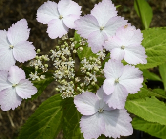 Nous avions trouvé ce superbe hortensia dans une pépinière lors d'un voyage au Japon. Il forme un petit arbuste de 80/100 cm environ de haut avec des feuilles allongées. En début d'été, larges inflorescences aplaties entourées de grandes fleurs stériles dentées, blanc-rosé. Une très belle floraison. Culture facile en situation ombragée. Plants de 40 cm environ en age de fleurir.