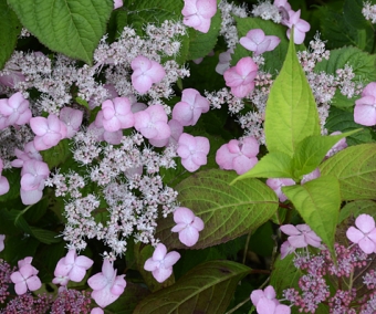 Un massif d'ombre sans hortensia n'est pas pensable ! Après une longue période de boules blanches, roses ou bleues, les Hydrangea connaissent un renouveau sans précédent avec l'arrivée des hortensias japonais et de nombreuses espèces chinoises et himalayennes, mais aussi par les nouveaux cultivars qui marquent une tendance au retour vers des inflorescences plus simples, se rapprochant des fleurs sauvages, avec des têtes florales plus aplaties, moins lourdes et où les fleurs fertiles font leur réapparition. On y gagne en légèreté et ses nouveaux hortensias sont plus faciles à associer aux autres plantes sauvages de nos massifs d'ombre. De plus, les hortensias japonais nous ont amené des variétés naines qui trouveront leur place plus facilement dans les petits jardins. Le choix dans les couleurs et formes de fleurs est immense et il y en aura pour tous les goûts. Bref, on n'a jamais eu autant le choix pour son jardin. Les hortensias se plantent à l'ombre ou à mi-ombre, dans toute bonne terre de jardin ne séchant pas trop. Leur culture est facile. On pourra planter les petites variétés japonaises parmi des plantes vivaces du style Podophyllum, arisaemas, ligulaires, astilbes, Chelonopsis, sauges, Actaea, Thalictrum, Tricyrtis...