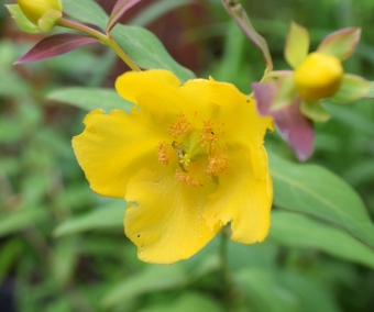 Hypericum choisianum est un millepertuis arbustif originaire de l'Himalaya. Il atteint entre 0.5 et 1 m de haut environ, il est très ramifié, ses rameaux sont arqués et portent de petites feuilles vertes devenant rouges en automne. En juin-juillet, ses grandes fleurs jaune vif de 4/7 cm de diamètre, très mellifères, s'ouvrent le long des rameaux. Un arbuste très beau qui change des millepertuis couvre-sol très courants et sensibles à la rouille. Soleil ou ombre légère, supporte les sols secs, pauvres et calcaires. z6. Nos plants sont issus de graines collectées au Sikkim dan l'Himalaya.
