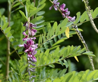 Indigofera pendula est un grand arbuste qui se couvre tout l'été et l'automne de très longs épis pendants de fleurs roses à la manière des fleurs de glycines. Les épis peuvent atteindre 30 cm de long. Rustique mais il est préférable, en régions froides, de protéger la plante les première années. En cas de gros froids, la partie aérienne peut disparaître mais la plante repart alors sans problème de la base. Sa croissance est rapide. Je me souviens de ces arbustes adultes au bord d'une route dans le Yunnan qui étaient tout en fleurs. C'était vraiment fabuleux. Son port est d'abord érigé puis ses branches sont arquées. Il peut atteindre entre 2 et 3 m de haut. Sans aucun doute le plus beau du genre que nous avions présenté à Courson au printemps 2013 et qui avait fait grande sensation ! z6-7.