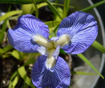 'Hatsukurenai' présente des fleurs d'un bleu violet franc, régulièrement et très esthétiquement striées de blanc... Parmi ceux qui sortent du lot !
