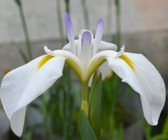 'Tsumabeni' est une variété gracieuse aux pétales blanc pur à coeur jaune avec les pétales teintés de bleu-violacé.