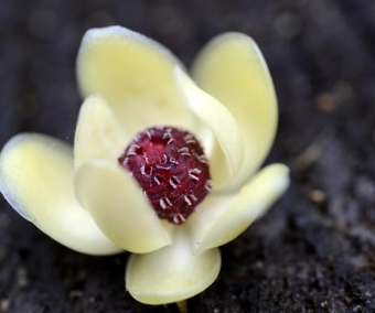 Kadsura japonica est une grimpante à feuilles persistantes. Il reste donc vert toute l'année, ce qui est intéressant si on le fait grimper pour cacher un mur moche par exemple. Celles-ci sont ovales et brillantes. Ses fleurs sont originales, solitaires, pendantes, jaune pâle, en juin-septembre. Elles sont suivies de baies rouges groupées en boules pendantes en automne. Mi-ombre ou soleil non brulant dans toute bonne terre de jardin riche, pas trop sèche et bien drainée. z7 mais mes plants supportent très bien le froid en Bourgogne contre un mur abrité des vents froids. Nos plants sont issus de graines collectées dans les montagnes de Shikoku.