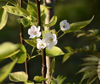 Ce petit pommier d'ornement a tout pour plaire. De culture très facile, sa floraison printanière est très abondante. Ses boutons floraux sont roses et s'ouvrent en grandes fleurs blanches, mellifères. Elles sont suivies en automne par de nombreuses "grosses" pommes d'ornement jaune brillant. Il reste au stade arbustif et atteint entre 3 et 4m de haut. Soleil ou ombre légère. Plants en âge de fleurir.