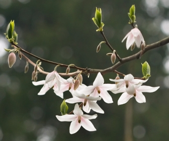 Melliodendron xylocarpum est un arbuste rare à grandes feuilles caduques. Son écorce s'exfolie avec l'âge. Au printemps, l'arbuste se couvre de grandes fleurs blanc-rosé. il atteint 3 à 4 mètres de haut. Rusticité de l'ordre de -10/-12°C environ. Plants de 60/80 cm, quantité très limitée.
