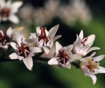 L'originalité de cette forme horticole de Mukdenia réside essentiellement dans son feuillage tout gaufré et teinté de rouge au p^rintemps et en automne. De la famille des saxifrages, c'est une plante de culture facile, aux rosettes de feuilles palmées rappelant quelque peu celles d'un érable japonais, qui s'épanouit à la mi-ombre ou au soleil non brûlant. Les hampes de fleurs blanches apparaissent au printemps et sont très gracieuses.
